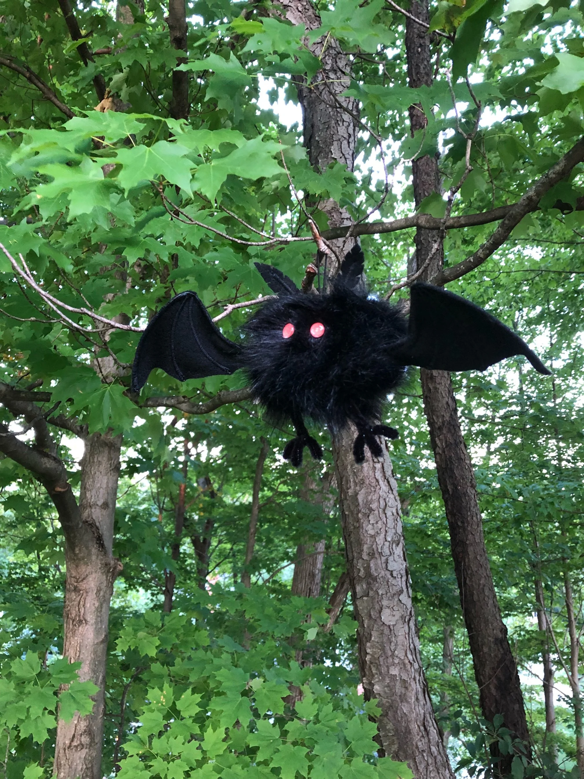 The mothman is humanoid creature with dark, shadowy skin and dark wings. This creature’s eyes are bright red and glow brilliantly. Adult mothmen are elusive, crepuscular (most active at twilight hours), and have magical abilities that impact the perception and consciousness of creatures that look at them, meaning they are very rarely observed in the wild. Much like their namesake, mothmen are metamorphic creatures, going through a dramatic shift in morphology at different points in their life cycle. Mothmen lay large, grey eggs from which their larva hatch. This larval stage, called a mothling, is about the size of a grapefruit and has shaggy black fur across the whole of its compact, round body. They have a set of small, spindly legs with 3 clawed toes that resemble a birds’ feet, and a pair of leathery, bat-like wings. Their eyes are red and glow, just like in their adult form (though not as brightly), and they have a proboscis-shaped mouthpart and two feathery antennae on their faces. The in the late fall (usually immediately following the first frost of the year), the mothling will burrow into the soil and go through a pupal stage to overwinter before emerging in early spring as an adult mothman. Adult mothmen are substantially larger than their larval stage, standing between 6-7 feet in height and having a wingspan of up to 10ft.